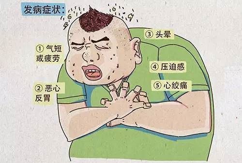 (2)上腹痛、恶心、呕吐、打嗝或烧心等容易和胃肠道疾病混淆的症状;