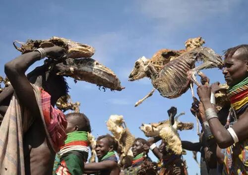 在肯尼亚图尔卡纳郡有140万的人口,大部分是以游牧为生,靠天吃饭。今年图尔卡纳遇到了有史以来最大的干旱,比2011年的干旱更为严重。干旱造成动物大量死亡,造成牧民的生活来源没了保障!