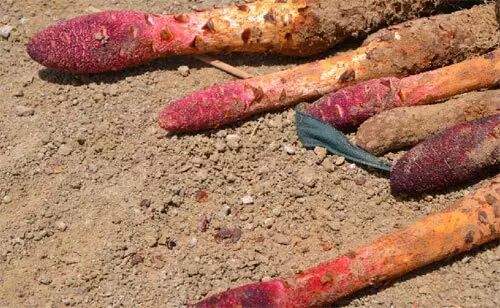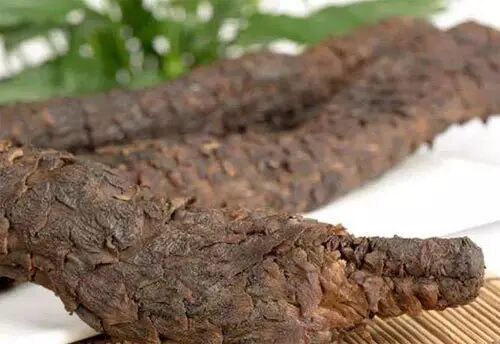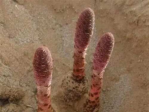 锁阳是一种生长在沙漠中的中药材,寄生在白刺的根茎上。锁阳可生吃可用来泡水喝。锁阳具有补肾阳、益精血、润肠通便的功效。