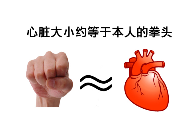 人类的心脏外形像个桃子,它的大小约和本人的拳头相似,如何想知道心脏多大,看看自己的拳头就知道。