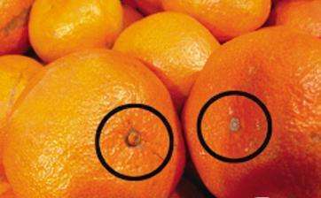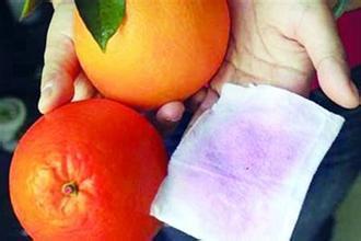 正常的橙子表皮的皮孔比较多,摸起来粗糙。假冒进口橙子表面的皮孔比较少,摸起来相对光滑些。对假冒的进口橙子用纸擦,纸的颜色会变红,因为在处理的过程中不良商贩加入了色素。