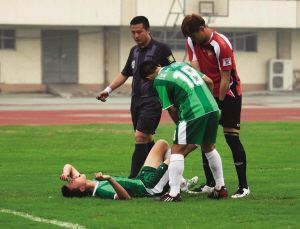 运动员在比赛中,腿最容易抽筋了,在足球场上,匆忙上场热身不足、下半场或加时赛过分疲劳、天气过热失水过多而没有及时补充,这些原因都有可能引起抽筋的。